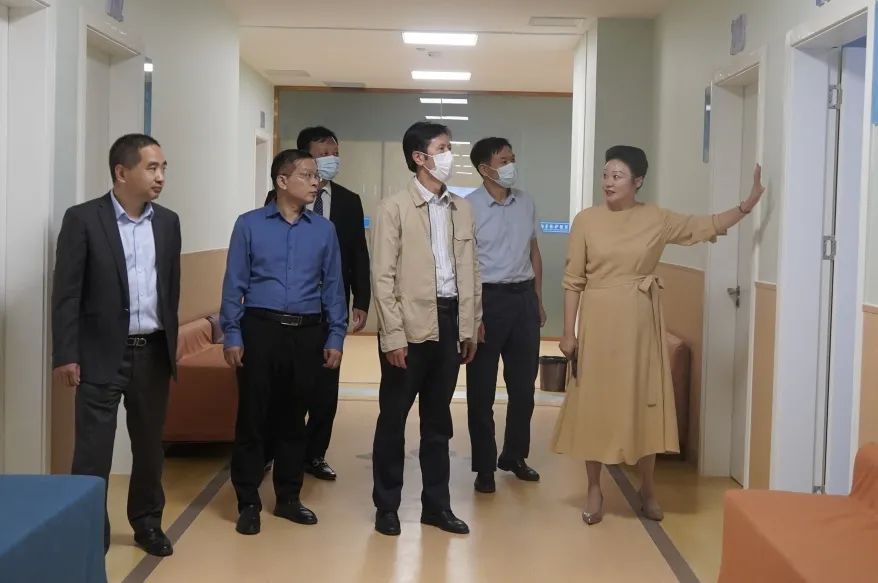 27日下午,李本謙副廳長在市民政局副局長易新生、華信建投集團總經(jīng)理韋向智和華信圣德健康集團董事長陳勇、監(jiān)事會主席付杰、黨委副書記儲文華、總經(jīng)理程紅等領(lǐng)導(dǎo)的陪同下,分別檢查了養(yǎng)老中心室外環(huán)境、公共設(shè)施、長者居住房間、娛樂場所和圣德康復(fù)醫(yī)院、護理院的設(shè)計布局與開診運營情況,對圣德康養(yǎng)中心及配套醫(yī)養(yǎng)融合的高標(biāo)準(zhǔn)建設(shè)給予高度評價。